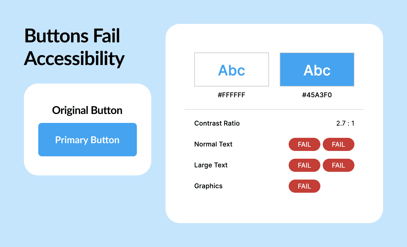 The live product did not meet WCAG AA standards. Colour contrast failures were widespread - buttons, text, and interactive elements across multiple sites were failing basic legibility thresholds. For the commercial product handling financial data, this wasn't just a design quality issue - it was a compliance and legal risk.