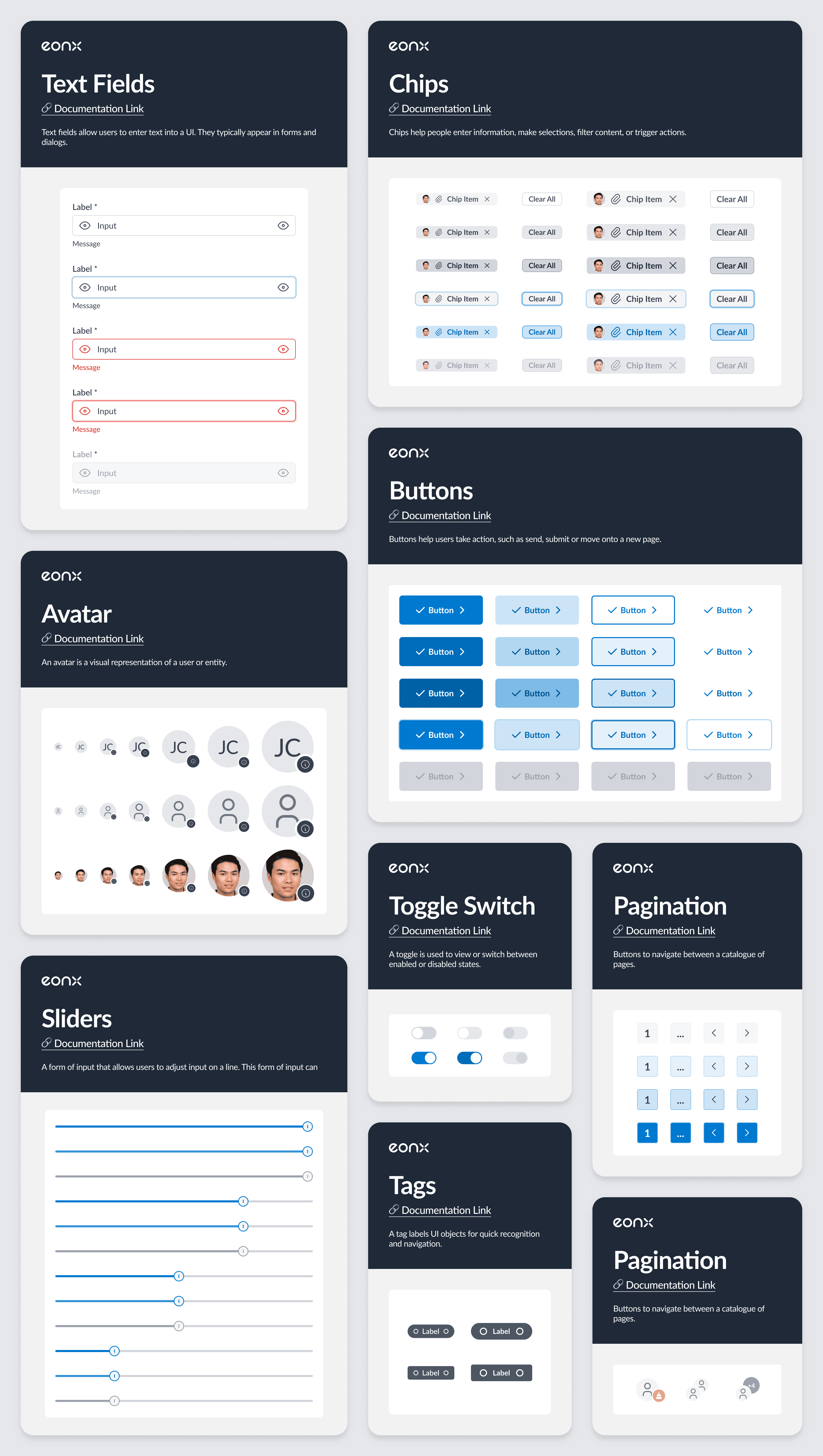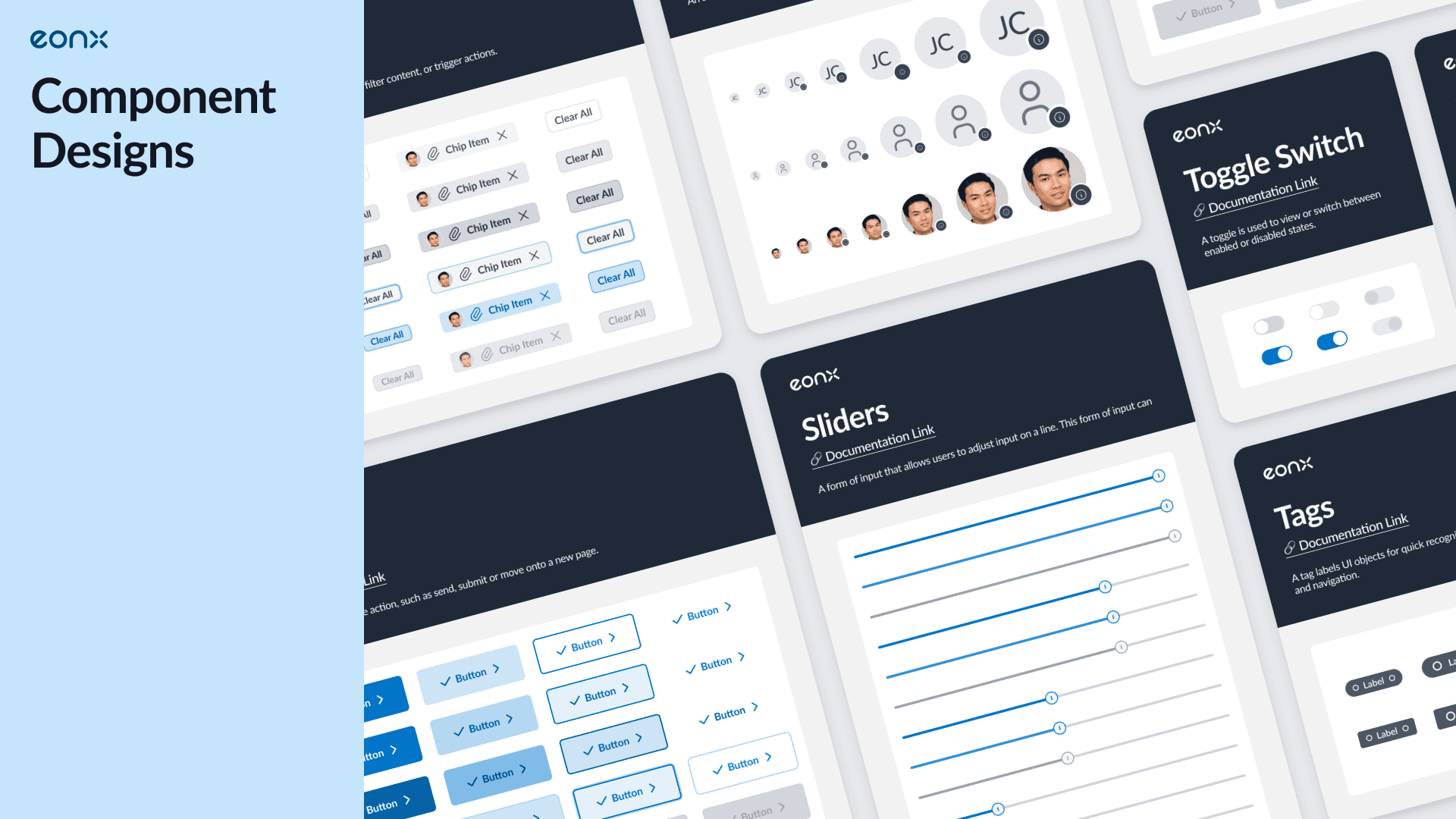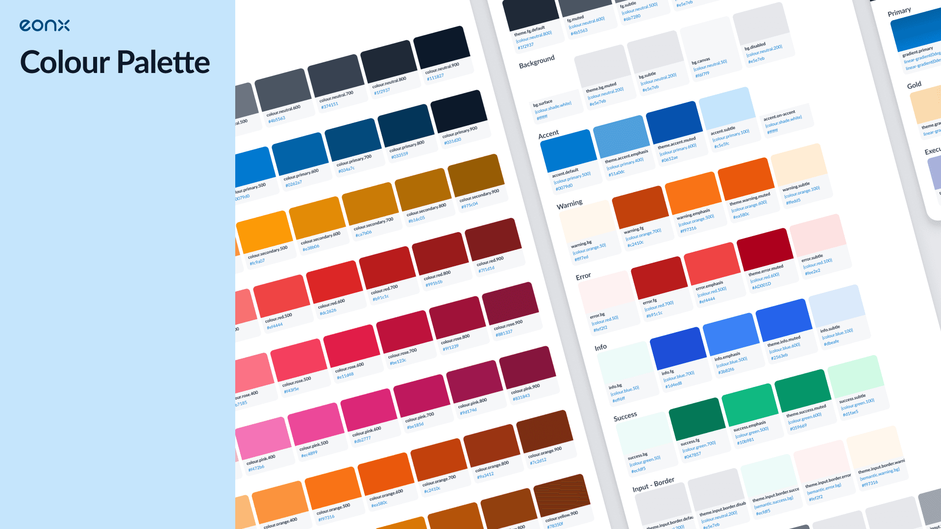 The design system provides the foundation; the next phase is full rollout. Every website in the EonX ecosystem needs to be rebuilt using the new components and sourcing tokens from the correct repository. As new clients are onboarded, designers will create client-specific token sets to match their branding - the reskinning capability built into the system makes this a configuration task rather than a design task. Comprehensive public-facing documentation should be built and hosted, covering colour usage, component behaviour, interaction patterns, and the reasoning behind key decisions - so the system can grow without losing coherence.