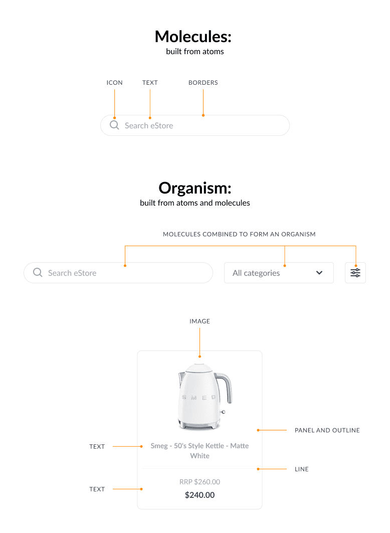 With the audit complete and a clear picture of what good looked like, I adopted Brad Frost's Atomic Design methodology to structure the build - atoms first, then molecules, organisms, templates, and pages. The approach was deliberate: each component tier references and builds on the one before it, which keeps the system scalable and internally consistent by design.