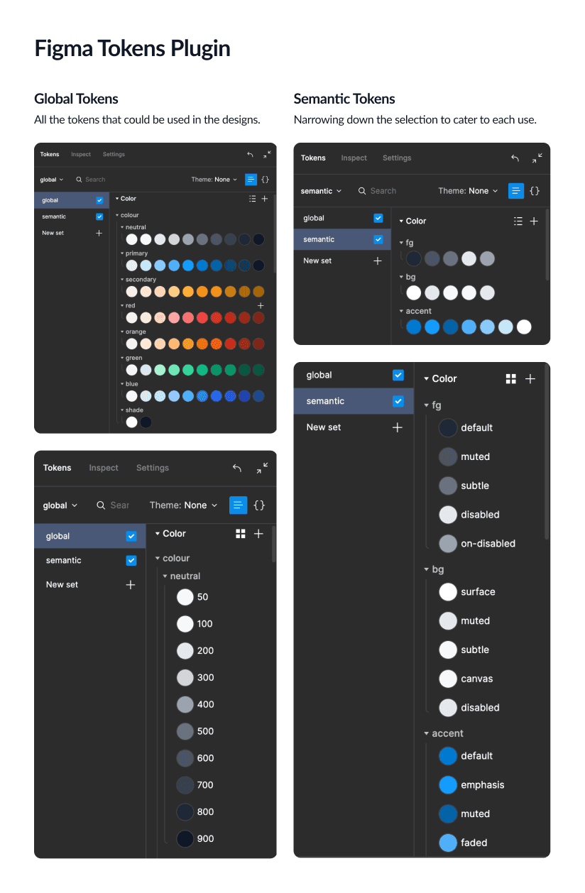 The impact was significant. Each brand could maintain its own token set within the plugin, with global and semantic tokens structured to allow complete visual transformations - colour, typography, spacing - without touching a single component. Tokens also brought the design and development teams into closer alignment, encoding design decisions in a format developers could consume directly rather than interpret from static files.