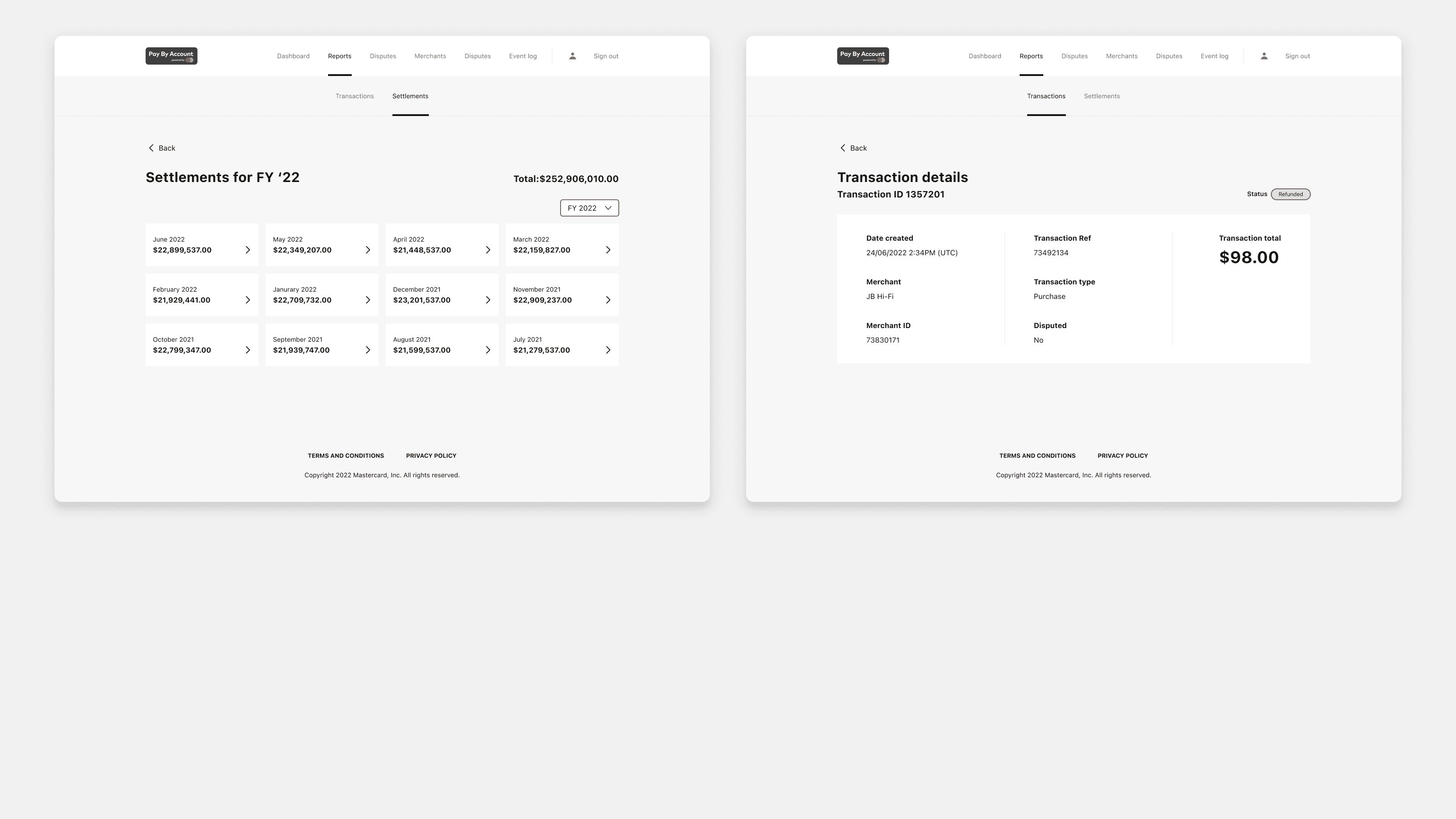 Mastercard was launching Pay by Account - a new payment method enabling customers to pay directly from their bank account at checkout. To support the product's rollout, a suite of portals was needed: one for resellers (banks), one for merchants, and one for customers. These portals would serve as the operational backbone of the product - handling transaction overviews, dispute management, merchant onboarding and offboarding, and financial reporting.