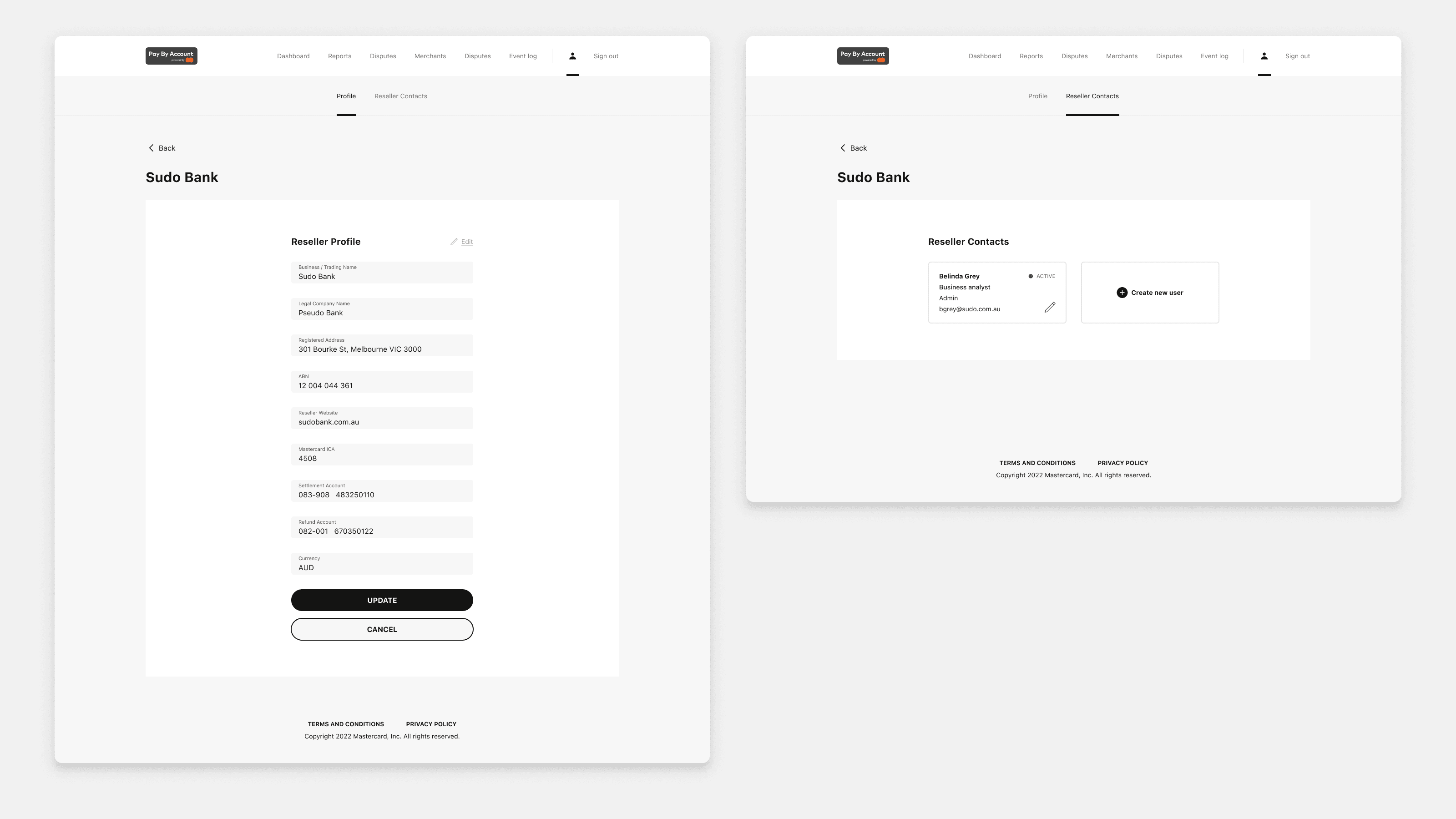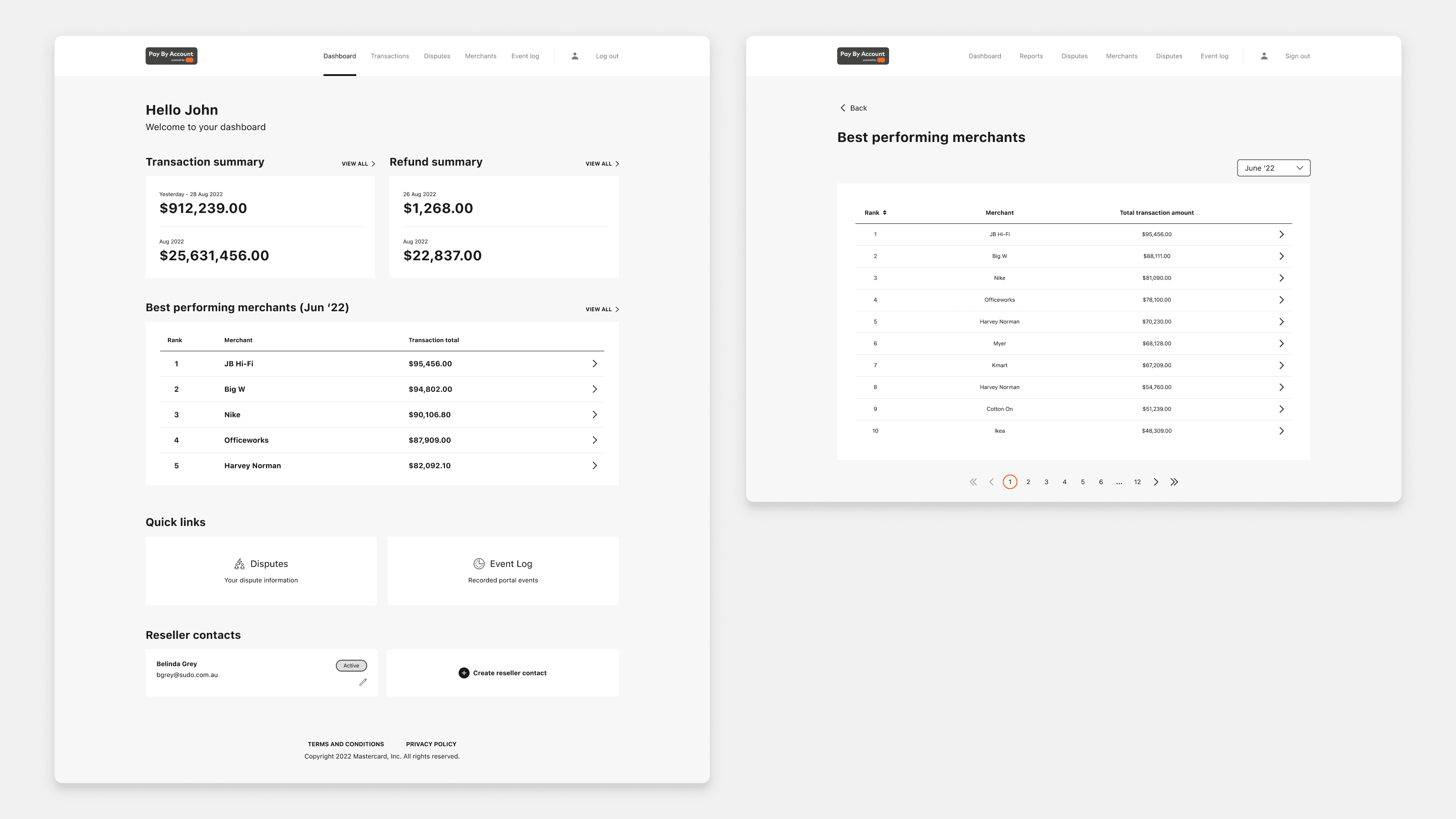 The challenge was that the portal had to serve meaningfully different user types under one consistent system. Customers needed to review transactions and raise disputes. Merchants needed financial summaries to inform business decisions. Resellers - the banks distributing the product - had the most complex role of all: they were responsible for overseeing merchant accounts, onboarding and offboarding merchants, managing contacts, and reviewing financial performance across their portfolio.